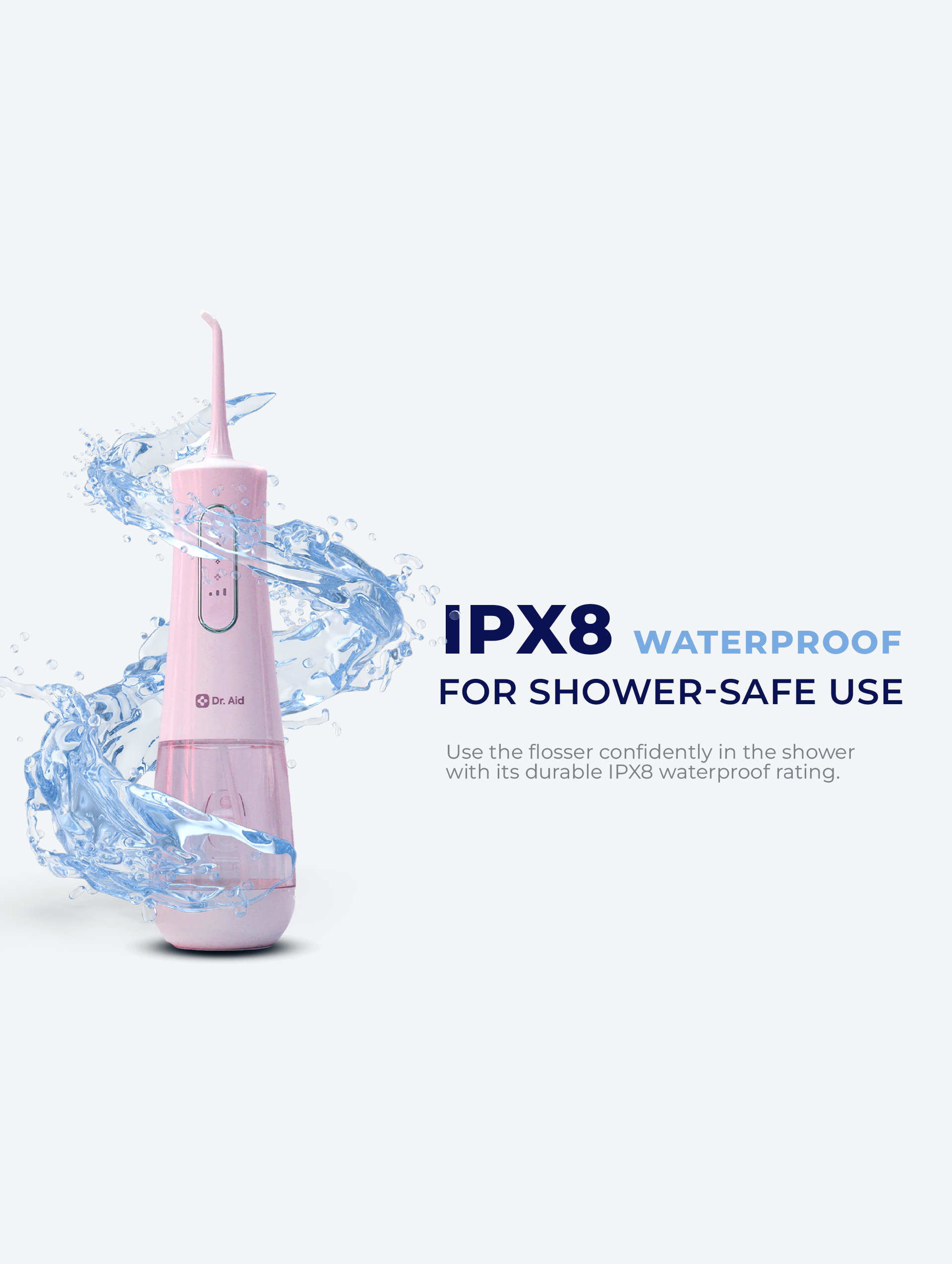 The 360° rotating nozzle ensures complete coverage, while the 3×3 adjustable pressure settings allow you to customize water intensity for your ideal comfort level. With Type-C fast charging, enjoy up to 60 days of use per charge, making it a dependable choice for travel or daily routines. Waterproof and equipped with a built-in water filter, the Dr. Aid Water Flosser helps promote healthier gums, fresher breath, and a brighter, more confident smile every day.
