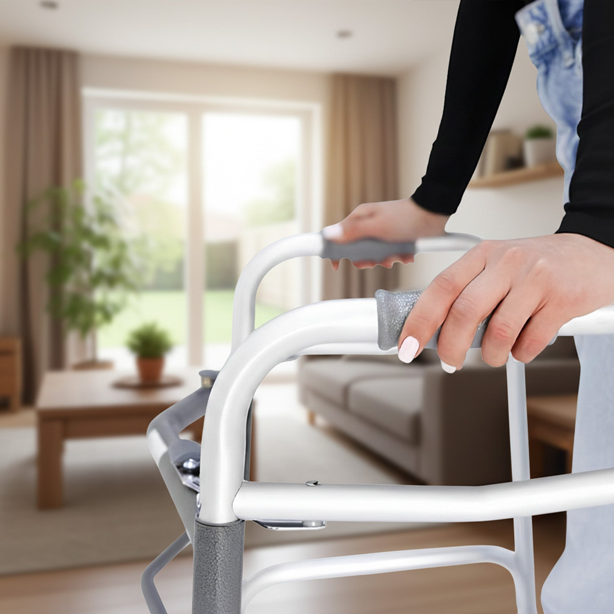 The Dr. Aid Adult Walker combines strength, comfort, and mobility for seniors and individuals with limited movement. Made from high-grade aluminum, it supports up to 400 lbs while remaining lightweight and easy to handle. The foldable frame allows quick storage and transport, ideal for home or travel use.