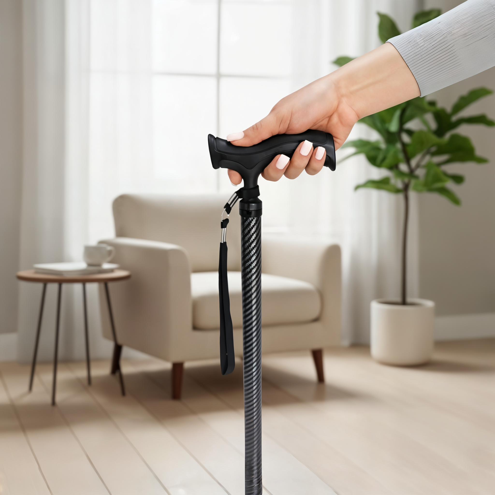 Lightweight yet sturdy, this carbon fiber cane folds down quickly for easy storage in bags, cars, or travel luggage. Whether you're running errands or heading on a trip, it’s the perfect portable support.