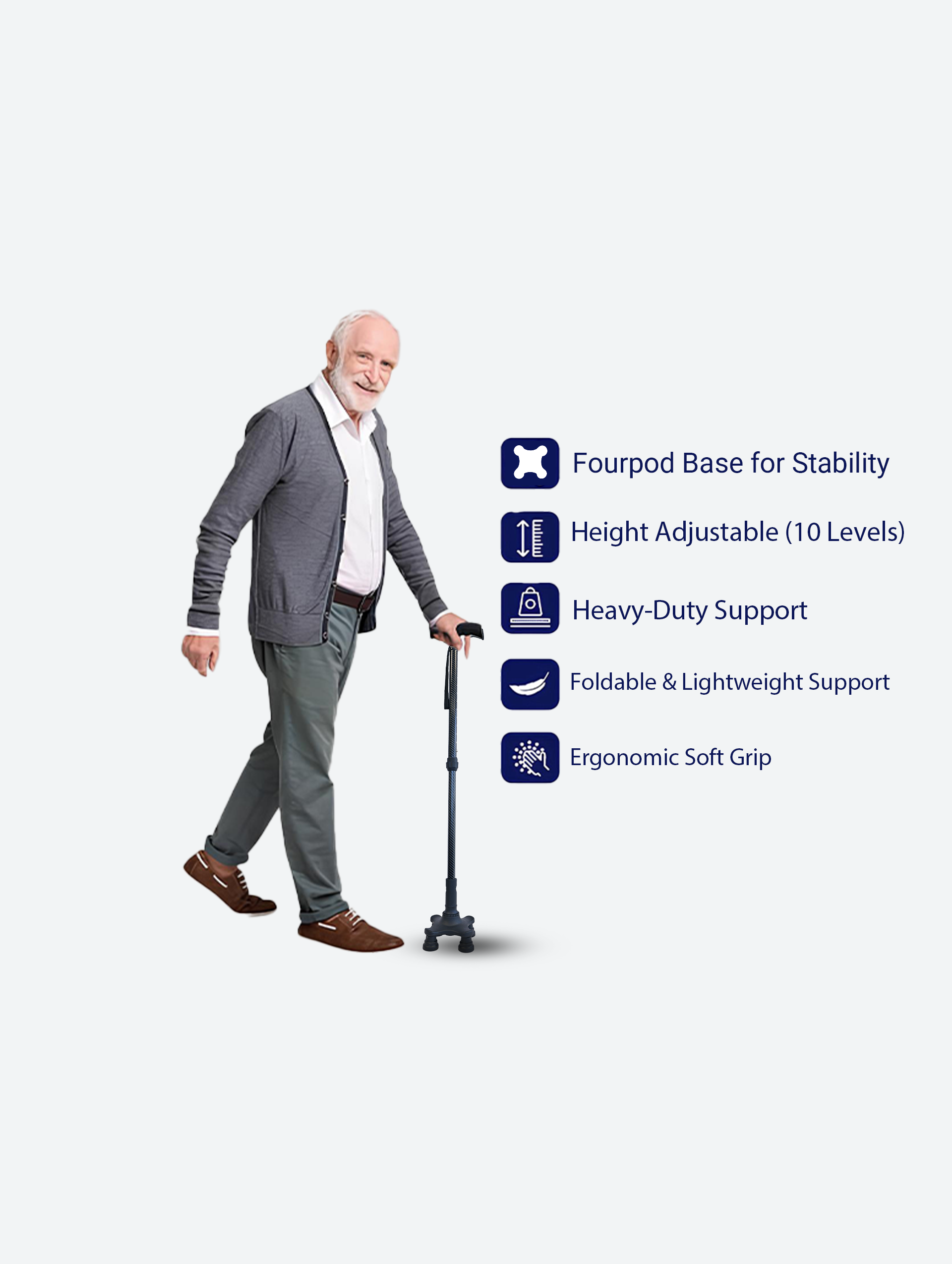 Designed for comfort and control, the cane’s soft-grip handle reduces hand fatigue and ensures a firm, slip-resistant hold. A must-have for seniors or anyone needing dependable, daily walking support.