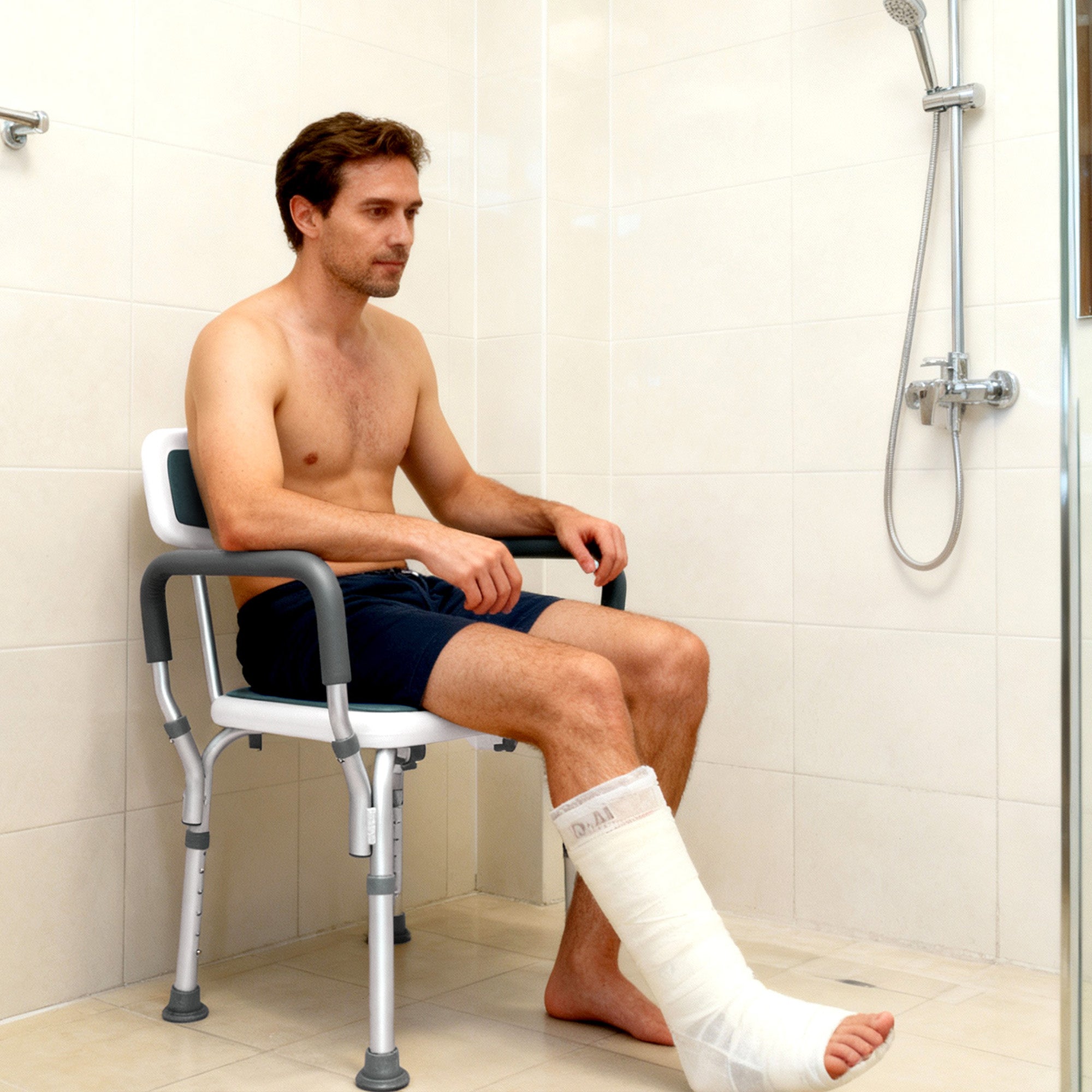 With six adjustable height options (14.5–22), you can easily set it to your preferred position for maximum comfort. Assembly takes just a few minutes — no tools, no hassle. Every piece fits securely, and the included instructions make setup simple. The 4-in-1 design gives you the flexibility to use it however you like — as a stool, a chair with arms, a chair with back support, or a complete seat with both. It’s ideal for seniors, disabled individuals, pregnant women, or anyone recovering from surgery who needs extra confidence and comfort in the shower. Built to last and easy to clean, the Dr. Aid Shower Chair makes daily bathing safer, steadier, and more comfortable — so you can relax knowing you’re supported every time.