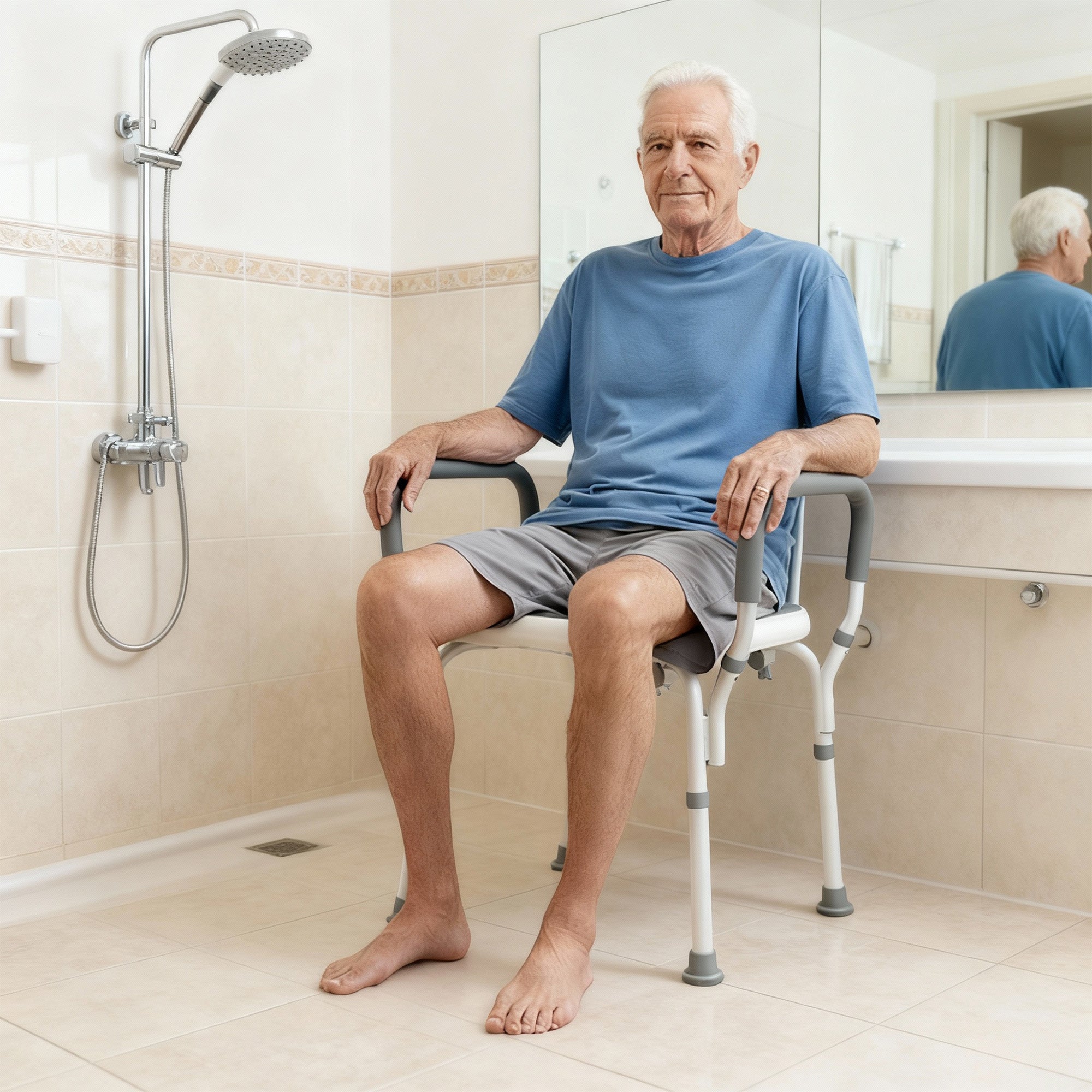 Provides firm support and comfort for safer, more independent bathing — ideal for seniors or anyone needing extra balance in the shower.