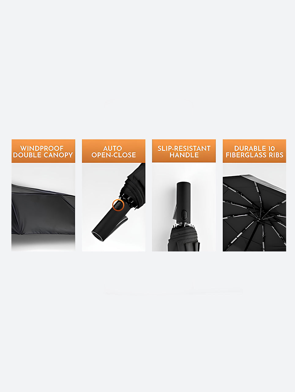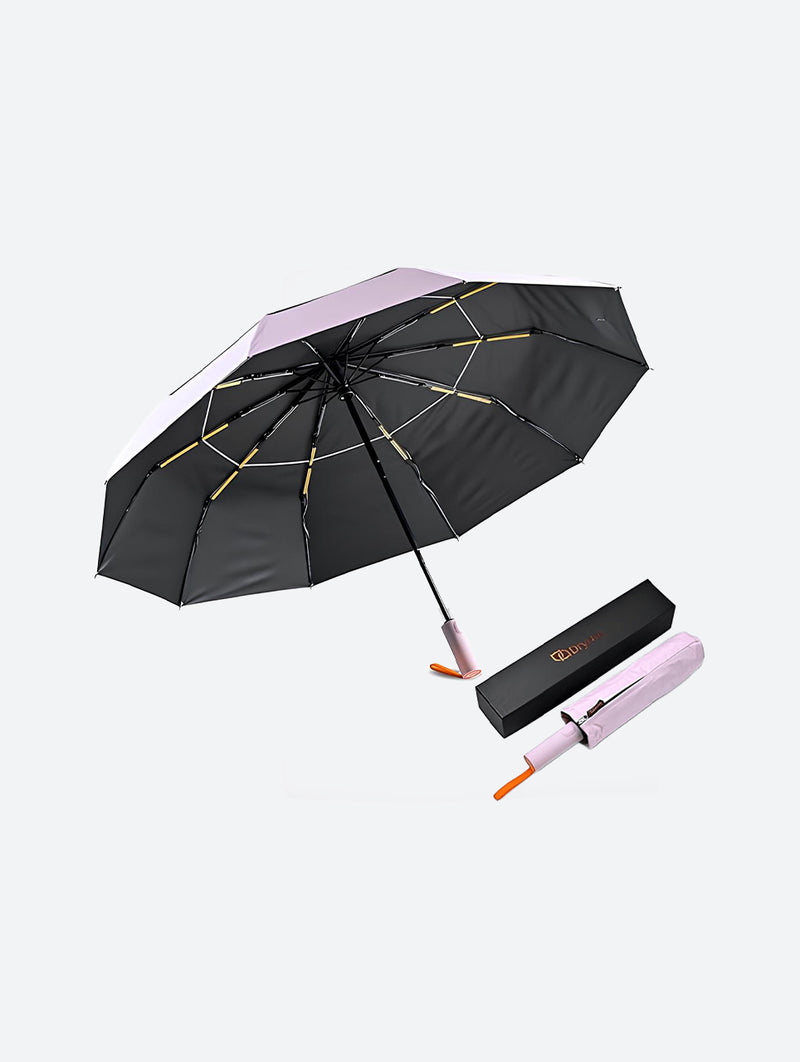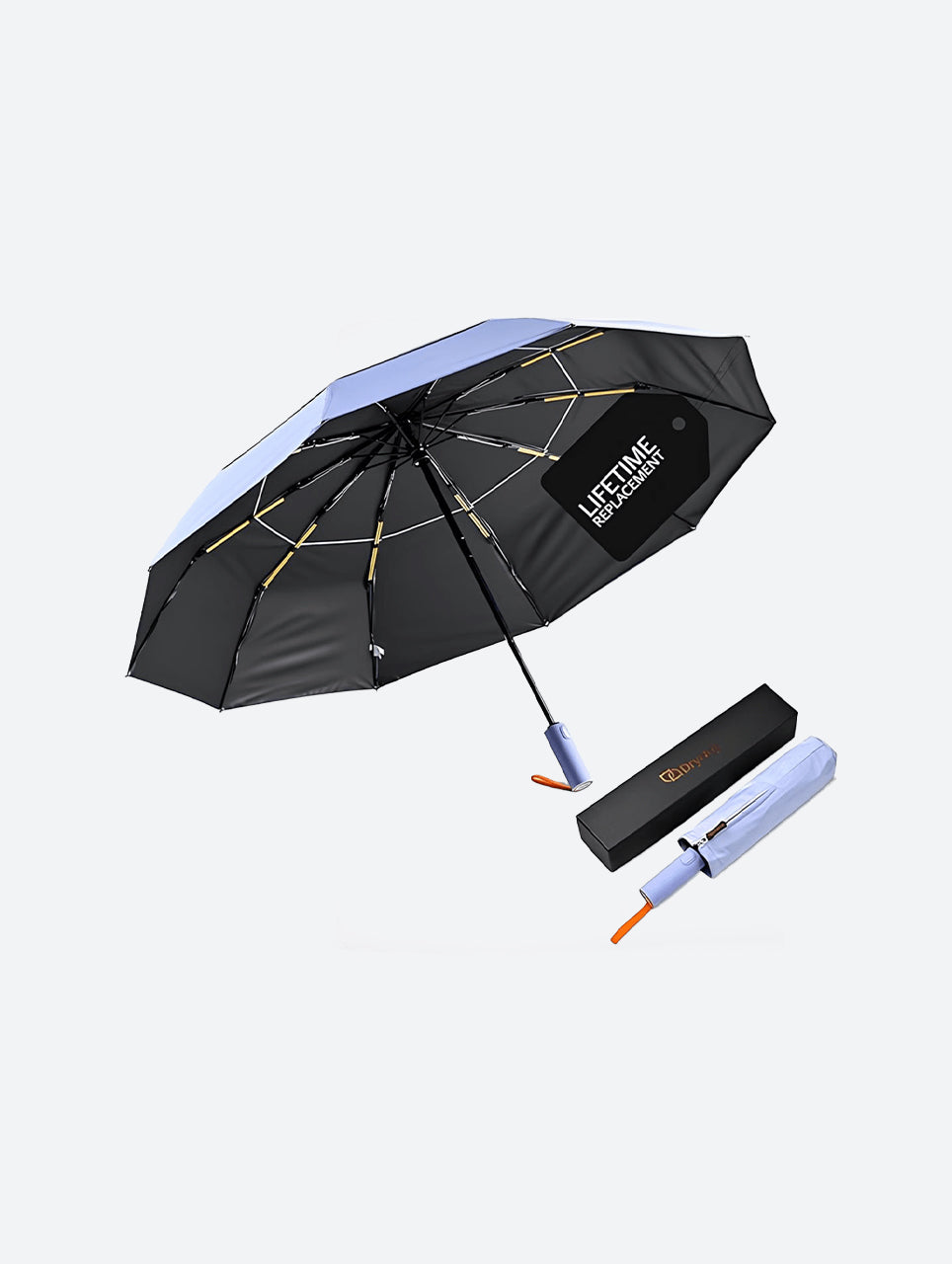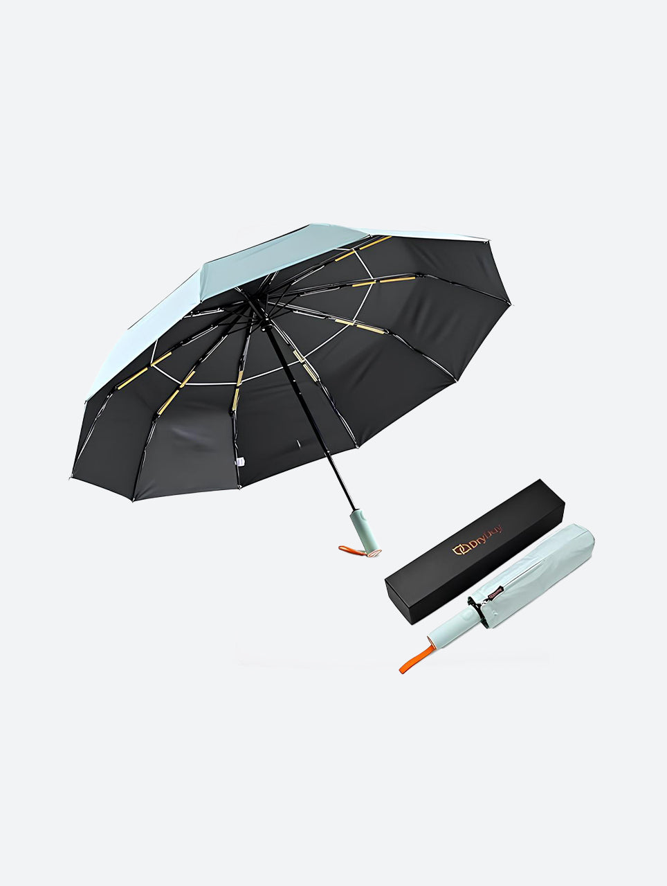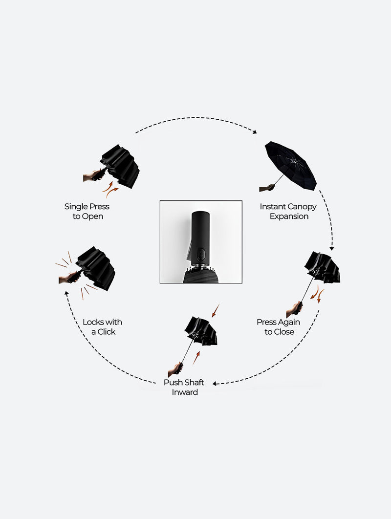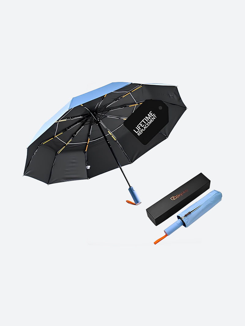 The DryDay Windproof Travel Umbrella offers superior coverage and exceptional stability in a portable, compact design. Featuring a generous 42-inch double canopy, this umbrella is built to withstand strong winds without flipping, providing the reliable protection of a large umbrella during sudden downpours and harsh weather. Convenience is key with its one-touch automatic open and close mechanism for effortless operation, and its unique, slip-resistant ergonomic handle ensures a secure and comfortable grip even in wet conditions. Constructed with durable yet lightweight materials, this windproof travel umbrella is the ideal choice for everyday use and stress-free trips, combining strength and portability for dependable coverage wherever you go.