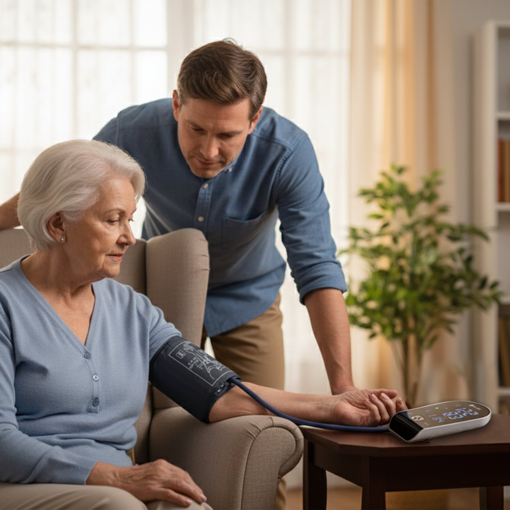 Designed for convenience and shared use, this unit supports two individual user profiles, storing up to 90 entries per user (180 total) and automatically generating averages to track long-term personal trends. The adjustable 22–42 cm band fits a wide range of arm sizes and includes both a fit-check feature and a movement-response indicator to help ensure consistent results.