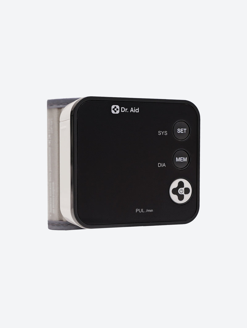 The Dr. Aid Wrist Blood Pressure Monitor combines precision, comfort, and smart functionality for effortless health tracking. Using advanced oscillometric technology, it provides fast and reliable readings with a single touch. The extra-large LED screen displays clear results, while one-button operation makes it simple for anyone to use — from busy professionals to seniors. Engineered for accuracy, the monitor measures 30–280 mmHg pressure and 40–199 bpm pulse rate, maintaining consistent precision with ±3 mmHg and ±5% accuracy levels. Its dual-user memory function stores up to 180 total readings, helping you and a loved one monitor long-term blood pressure trends with ease.